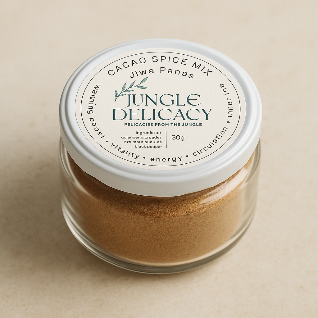 Cacao staat bekend om zijn hartopenende en energiegevende eigenschappen. Jiwa Panas versterkt dat effect. Steranijs sluit natuurlijk aan bij de diepe chocoladetonen. Koriander en galangal tillen de bloemige aroma’s van cacao op. Zwarte peper en cayenne zorgen voor een scherpe, heldere finish die focus brengt. Samen transformeren ze cacao tot een drank die rijker en levendiger is.